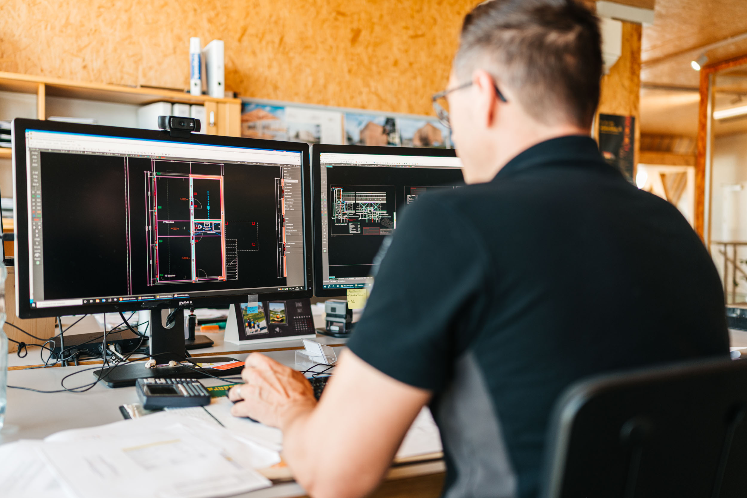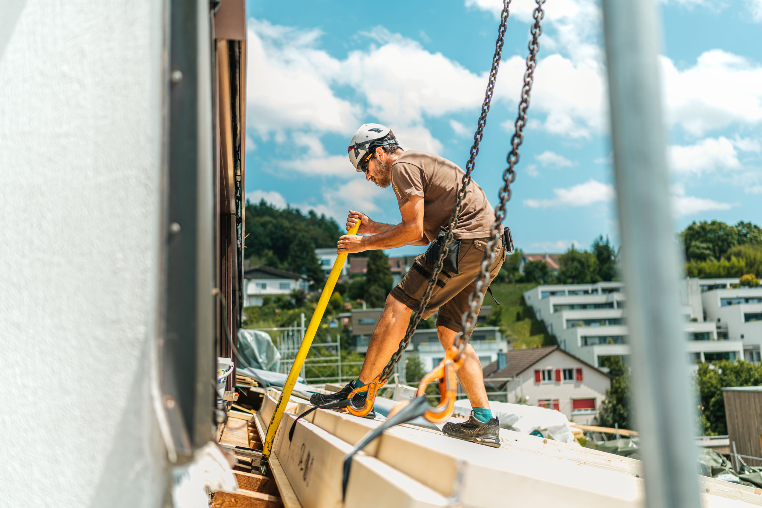 Wir sind Zimmerleute mit Leib und Seele und wir machen Hightech-Holzbau mit Herz und Verstand. Wir bauen vom Einfamilienhaus bis zur Flugzeughalle alles, was man mit Holz heute bauen kann. Mit «bauen» meinen wir eine Fülle von Prozessen, die den modernen Elementholzbau heute ausmachen. Planung, Konstruktion, Produktion und Bauen greifen ineinander und sind mit den effizientesten Werkzeugen ausgestattet.