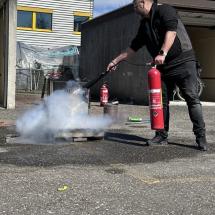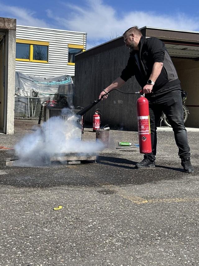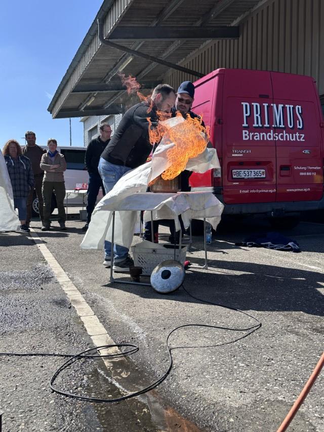 Bei der Feuerlösch-Schulung stand der richtige Umgang mit Feuerlöscher und Löschdecke im Zentrum. In praxisnahen Übungen wurden verschiedene Brandszenarien simuliert und aufgezeigt, wie man im Ernstfall rasch und sicher reagieren kann.