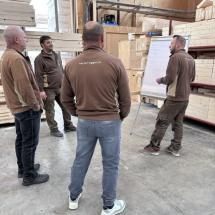 Auch bei der Arbeitssicherheits-Schulung im Holzbau ging es zur Sache: An mehreren Posten wurden unsere Mitarbeitenden gezielt zu unterschiedlichen Gefahrenquellen geschult – direkt an Maschinen, in typischen Alltagssituationen und mit konkreten Massnahmen zur Prävention.